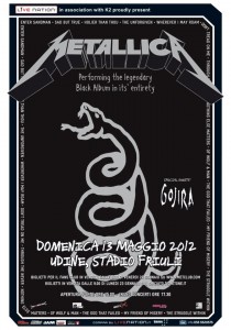 Da una decina di giorni sono disponibili in prevendita i biglietti per il concerto del 13 Maggio 2012 dei Metallica allo stadio Friuli di Udine.